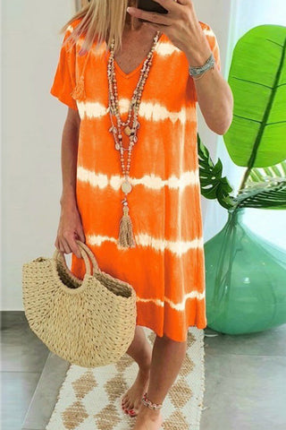 Voletter Casual Loose Printed V Neck Short Sleeve Dress