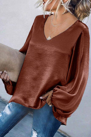 Voletter Chic Loose Solid V Neck Long Sleeve Top