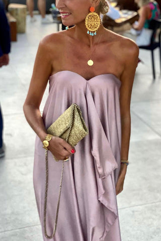 Voletter Chic Solid Chest Wrap Off Shoulder Sleeveless Long Party Dress