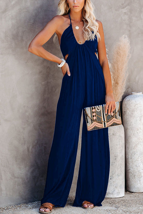 Voletter Chic Solid Sling U Neck Backless Slim Jumpsuit