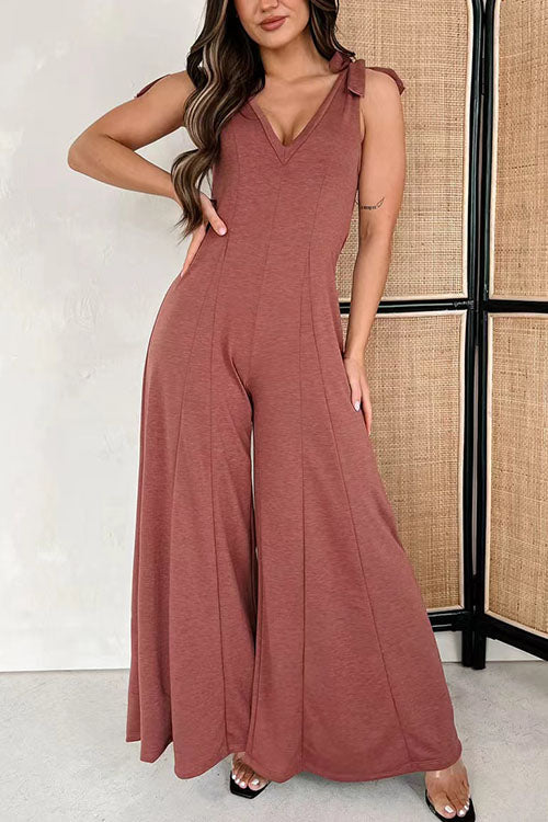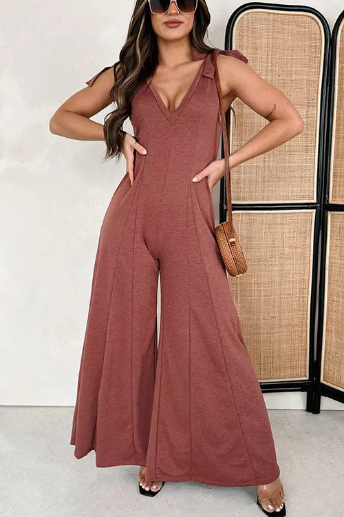 Voletter Fashionable V-Neck Resort Style Jumpsuit