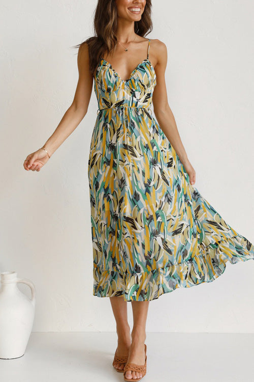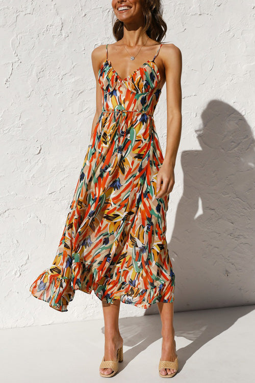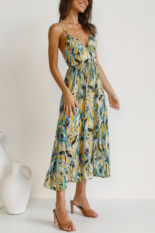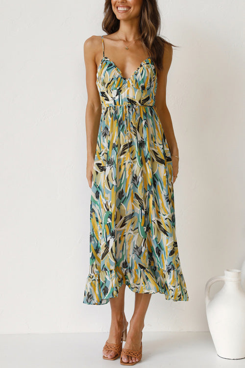 - Printed,Sling,V Neck,Sleeveless
