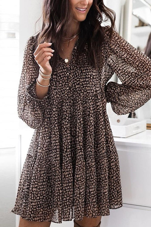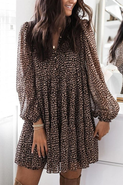 - Leopard,Lantern Sleeve,V Neck