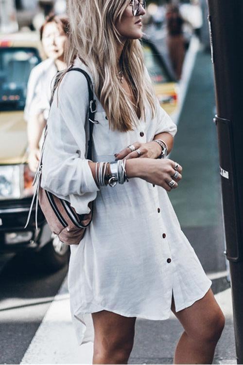 Voletter Buttons White Sunscreen Cover-up Shirt Dress